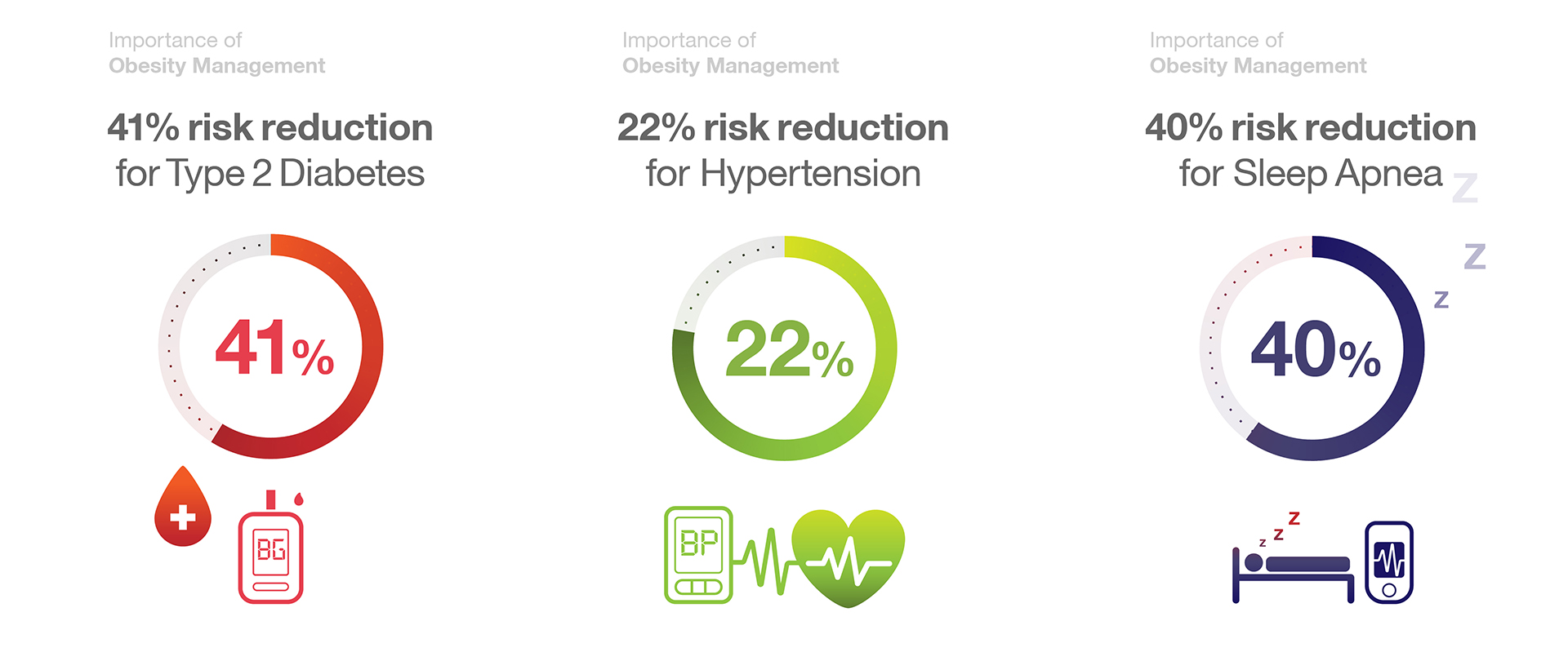 In a separate study, an average 13% weight loss across participants with a median BMI of 40 kg/m2 saw great risk reductions for obesity-related