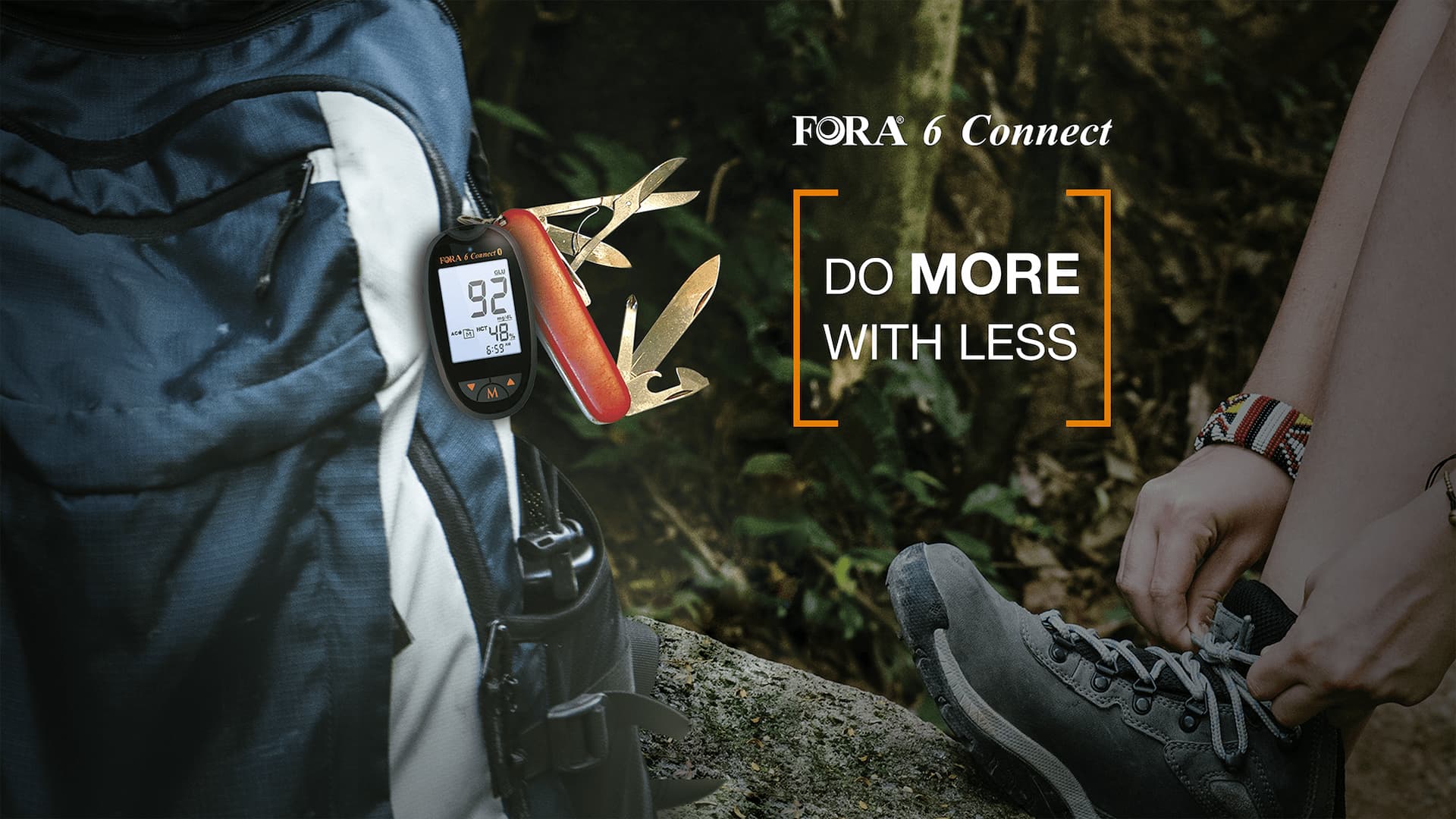 You can use the FORA Blood Glucose meter included in the Starter kit. The device uses a small drop of blood from your finger to measure your blood glucose level.